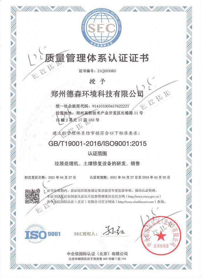 鄭州德森環(huán)境科技有限公司是一家以環(huán)境工程應用技術研發(fā)為核心、設備加工制造為輔助的國家高新技術企業(yè)。