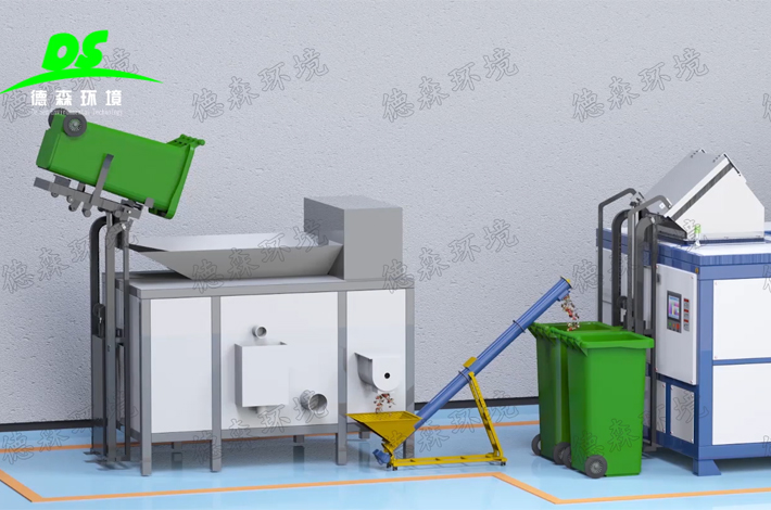 當前,我國的生活垃圾分類項目已經進行了試點運行。為了更好地配合垃圾分類,推進我國城市化建設,如何及時有效地處理餐廚垃圾成為亟需解決的問題。餐廚垃圾已經嚴重影響到人們的生活和社會環境。目前,大型垃圾處理設備已經得到實際應用,但是大部分的餐廚垃圾產地與大型垃圾處理設備相距較遠,并且大型餐廚垃圾處理生產線流程復雜,設備占地面積也較大,工藝繁瑣,生產周期長,資金投入較多,成本太大,而且集中收集處理的時候需要運轉的距離也比較長,也會增加運輸風險,因此餐廚垃圾處理成套設備并不是越大越好。
